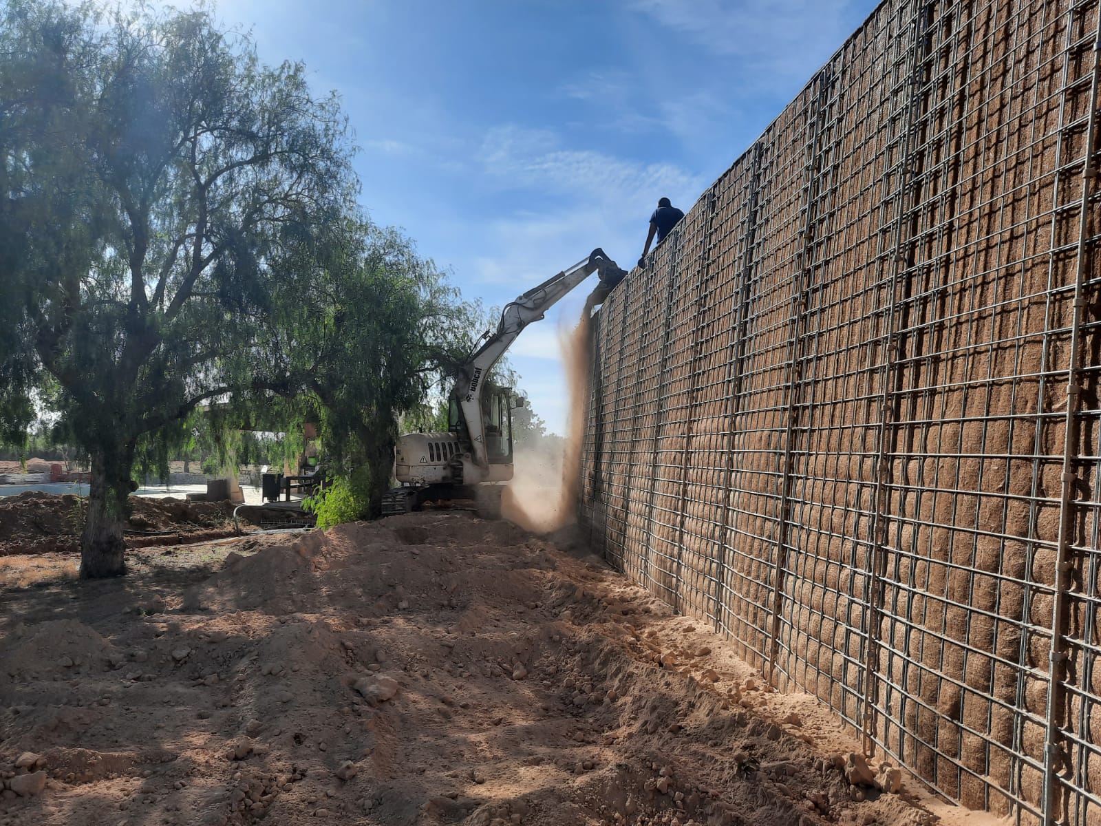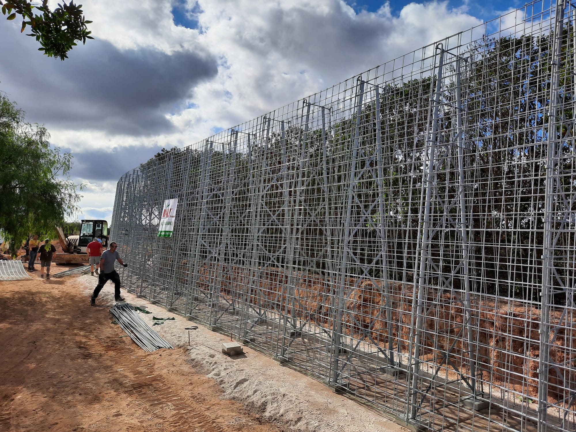 Die Einzelteile der Klimawand wurden in Berlin gefertigt, mit der Spedition bis Barcelona gebracht und von dort mit der Fähre auf die Baleareninsel. Begleitet wurde der Transport vom festen Mitarbeiterstamm von RAU.bayern. Die benötigten Kräne, das Material für die Einschüttung und weiteres Personal wurden Ressourcen schonend vor Ort organisiert.