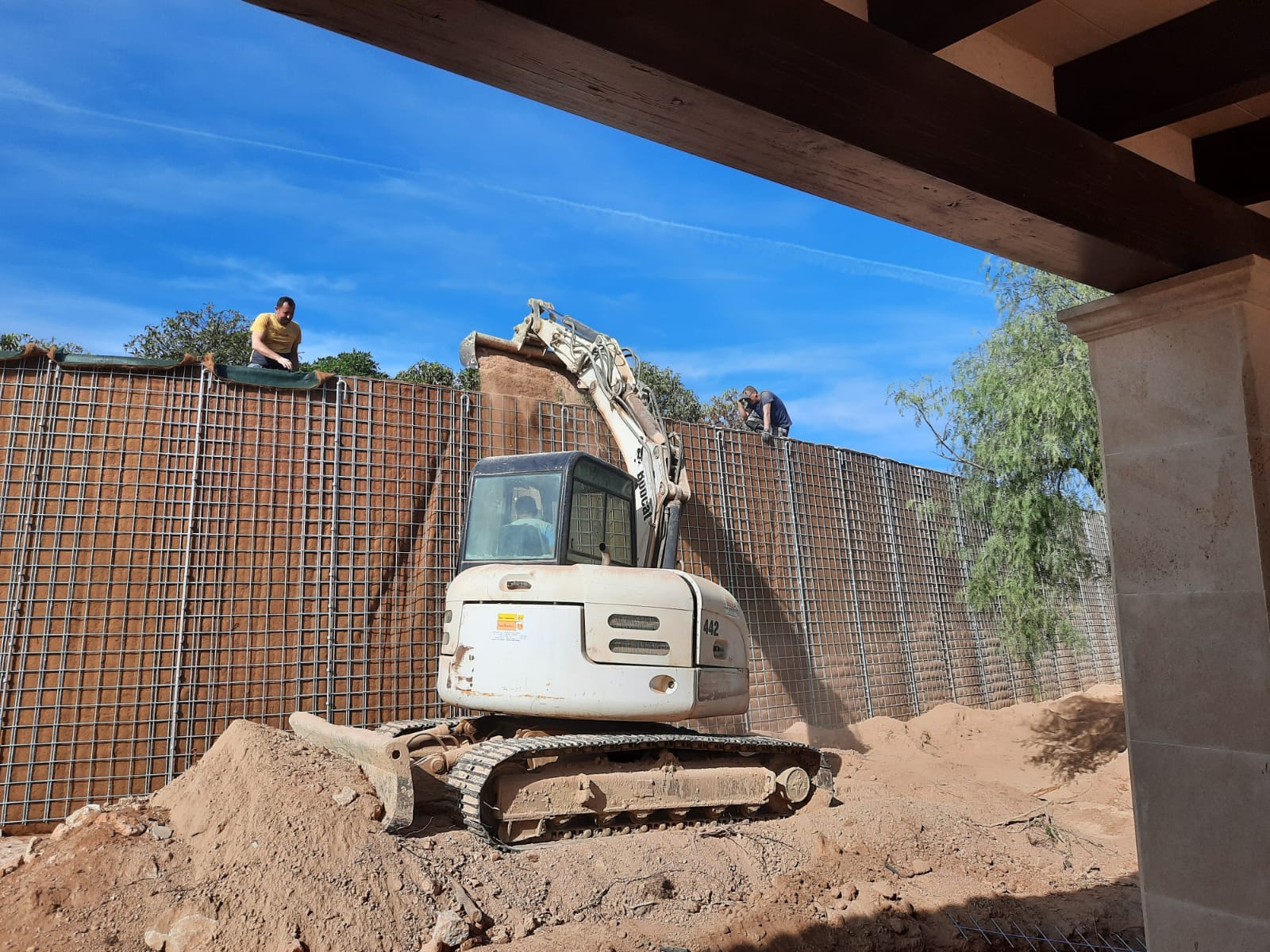 Ja tatsächlich, RAU.bayern baut Lärmschutz in Mallorca! Ein Kemptner Auftraggeber beauftragte uns für eine RAU R3 Klimawand an seiner neuen Finca in Llucmajor. Die Stadt liegt etwa 15 Kilometer südöstlich des Flughafens Palma in Sichtweite des Berges Puig de Randa inmitten der ursprünglichen mallorquinischen Landschaft. Die RAU Klimawand R3 wird die Bewohner der Finca später nicht nur vor dem Lärm der nahen Straße, sondern auch vor dem ständig wehenden Wind der Insel schützen.