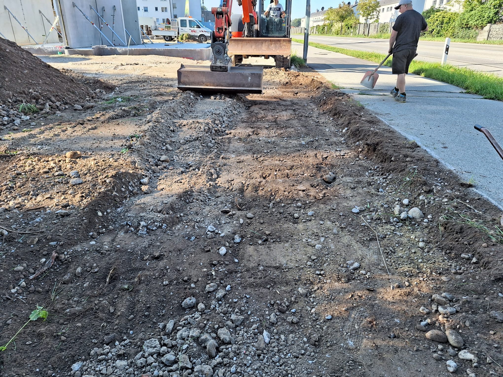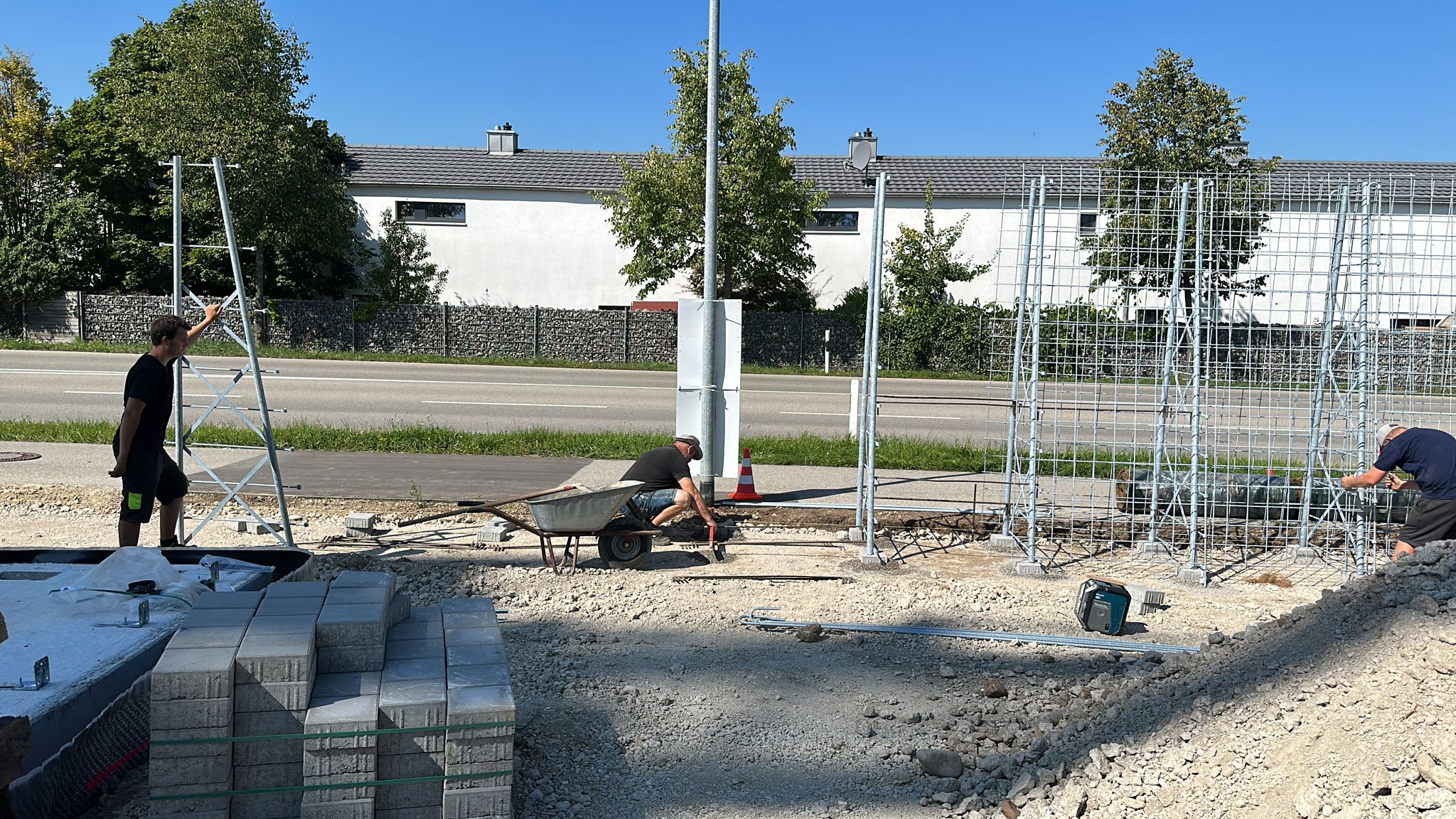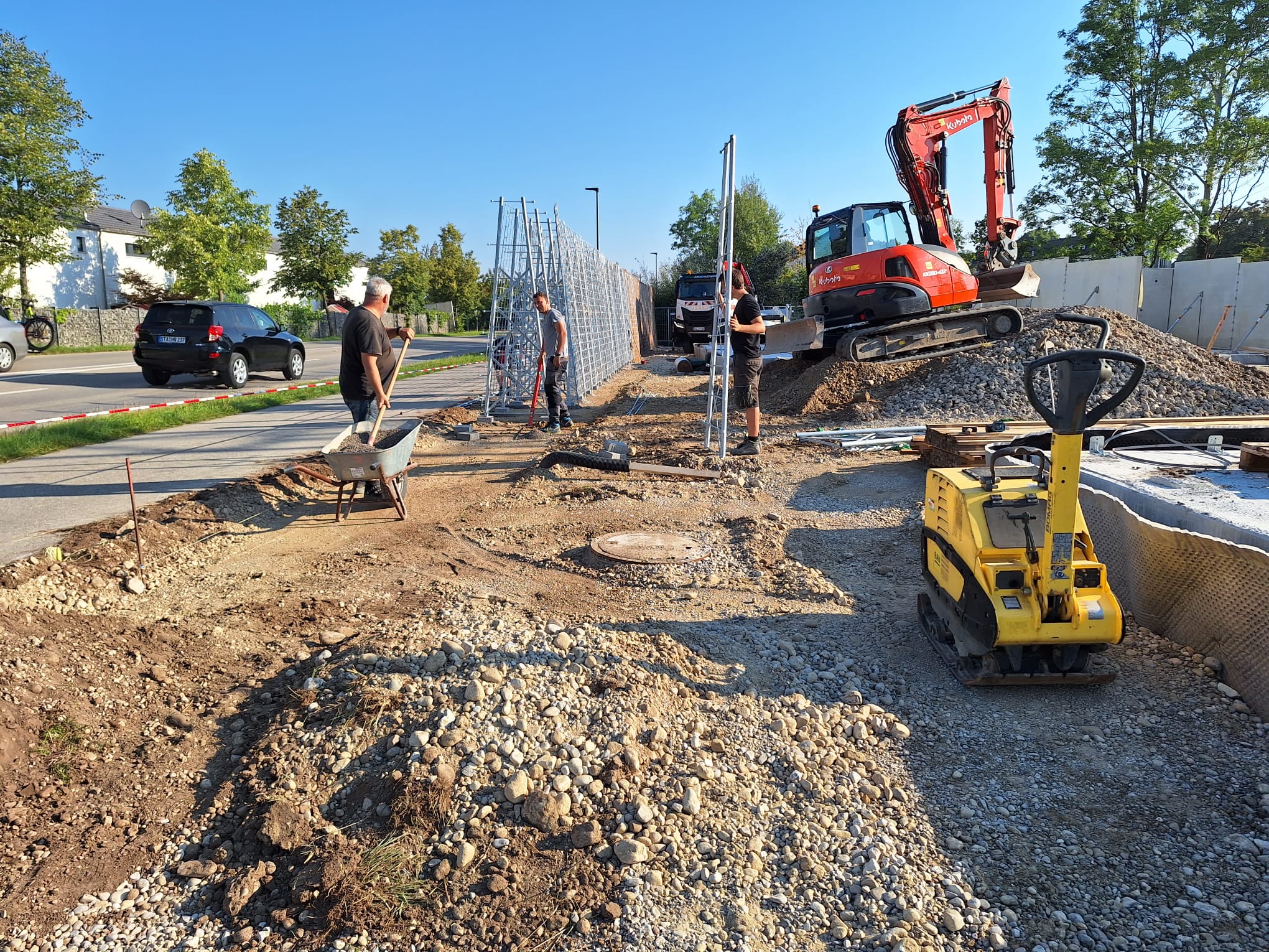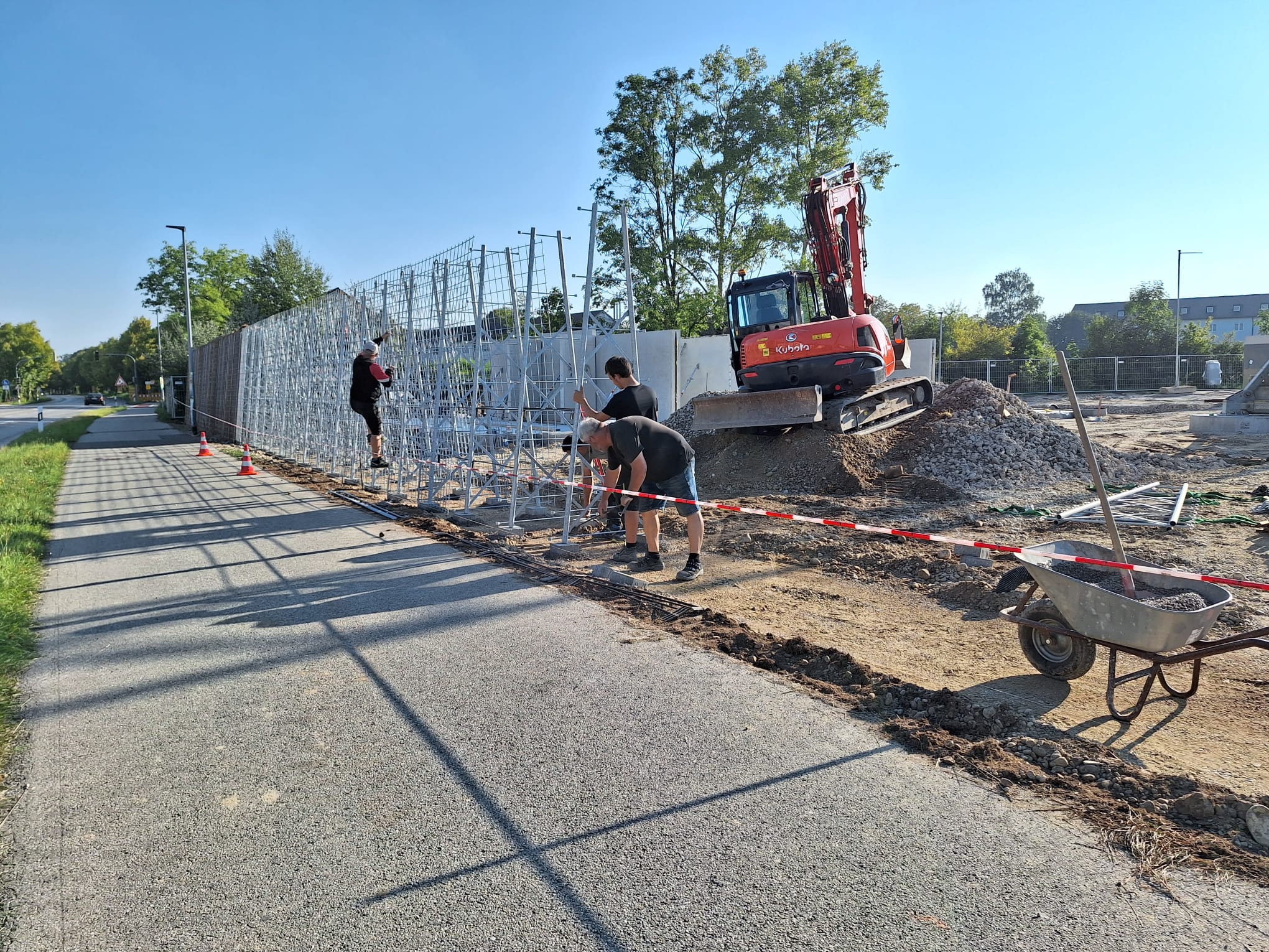 Der neue Auftrag der Firma Brutschin-Conductor Allgäu GmbH jedoch könnte den Arbeitstitel „Heimspiel für unsere Montageprofis“ tragen. Im großen Kaufbeurer Neubaugebiet entlang der Apfeltranger Straße realisieren wir nach 2021 bereits das zweite Projekt, eine 75.00 m lange und 3.00 m hohe RAU Klimawand R3, die durch eine RAU Rock (Länge 15.25 m, Höhe 3.00 m) ergänzt wird. Diese Baustelle liegt praktisch vor unserer Haustüre und das freut nicht nur den Geschäftsführer, sondern auch die Mitarbeiter. Anstatt im Hotel „auf Montage“ können sie dieses Mal im eigenen Bett schlafen. Baubeginn des Projektes war der 07.09.2023 und wenn das Wetter es zulässt, können wir es bereits in der 38. Kalenderwoche abschließen. Danach geht es wieder raus in die „weite Welt“.