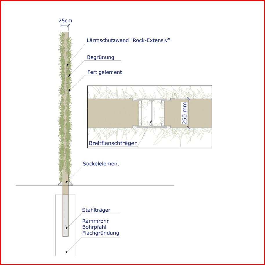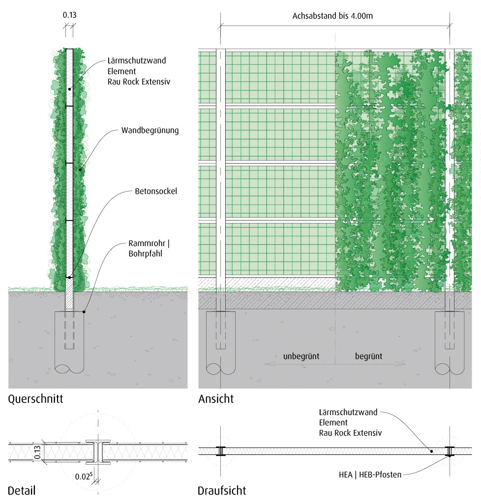 RAU Rock Extensiv für platzsparenden und begrünten Lärmschutz