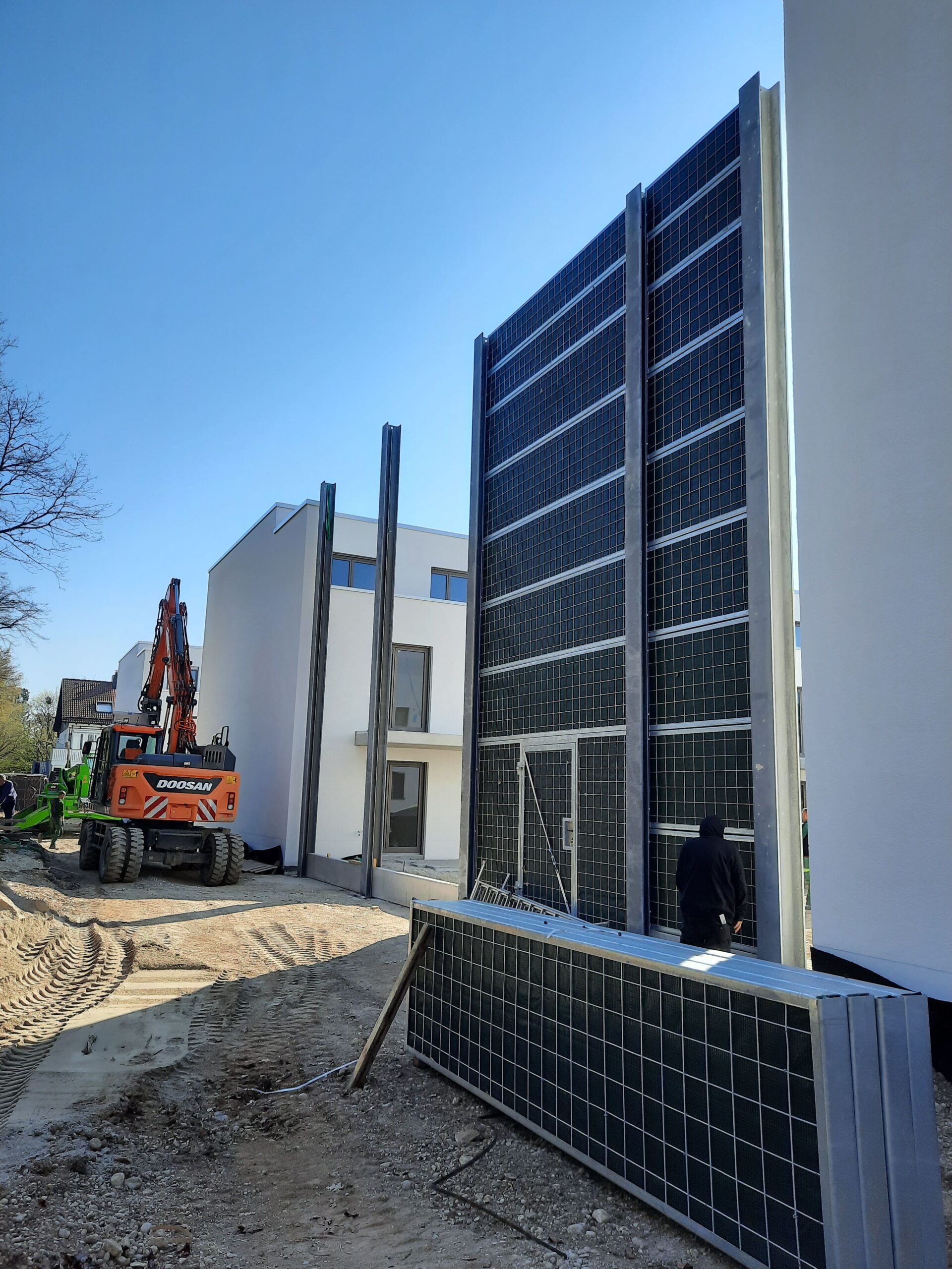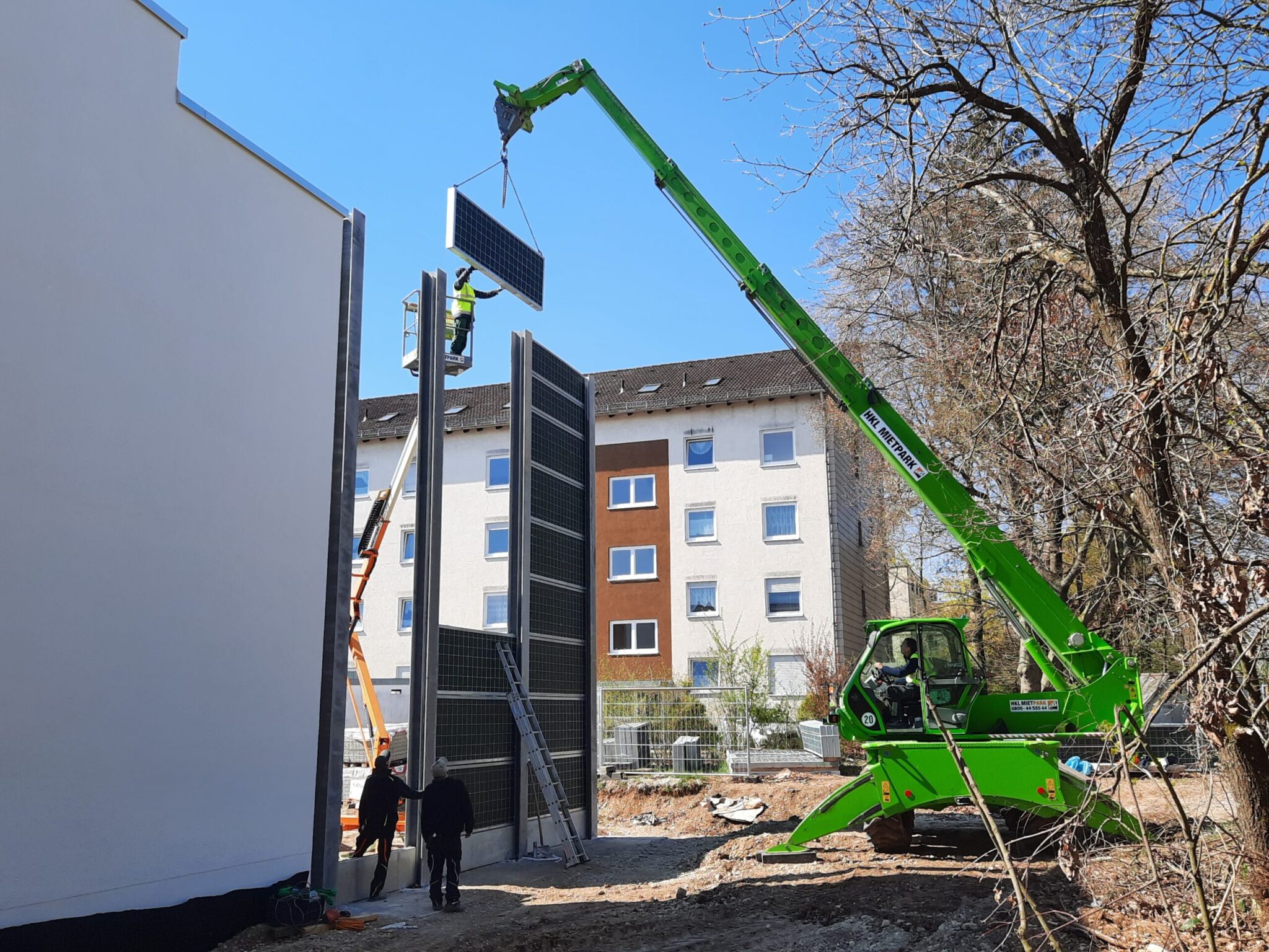 Effektiver Lärmschutz zur Bahnstrecke: Eine 8,60 m hohe Lärmschutzwand aus 2 m x 4 m großen RAU Rock Elementen.