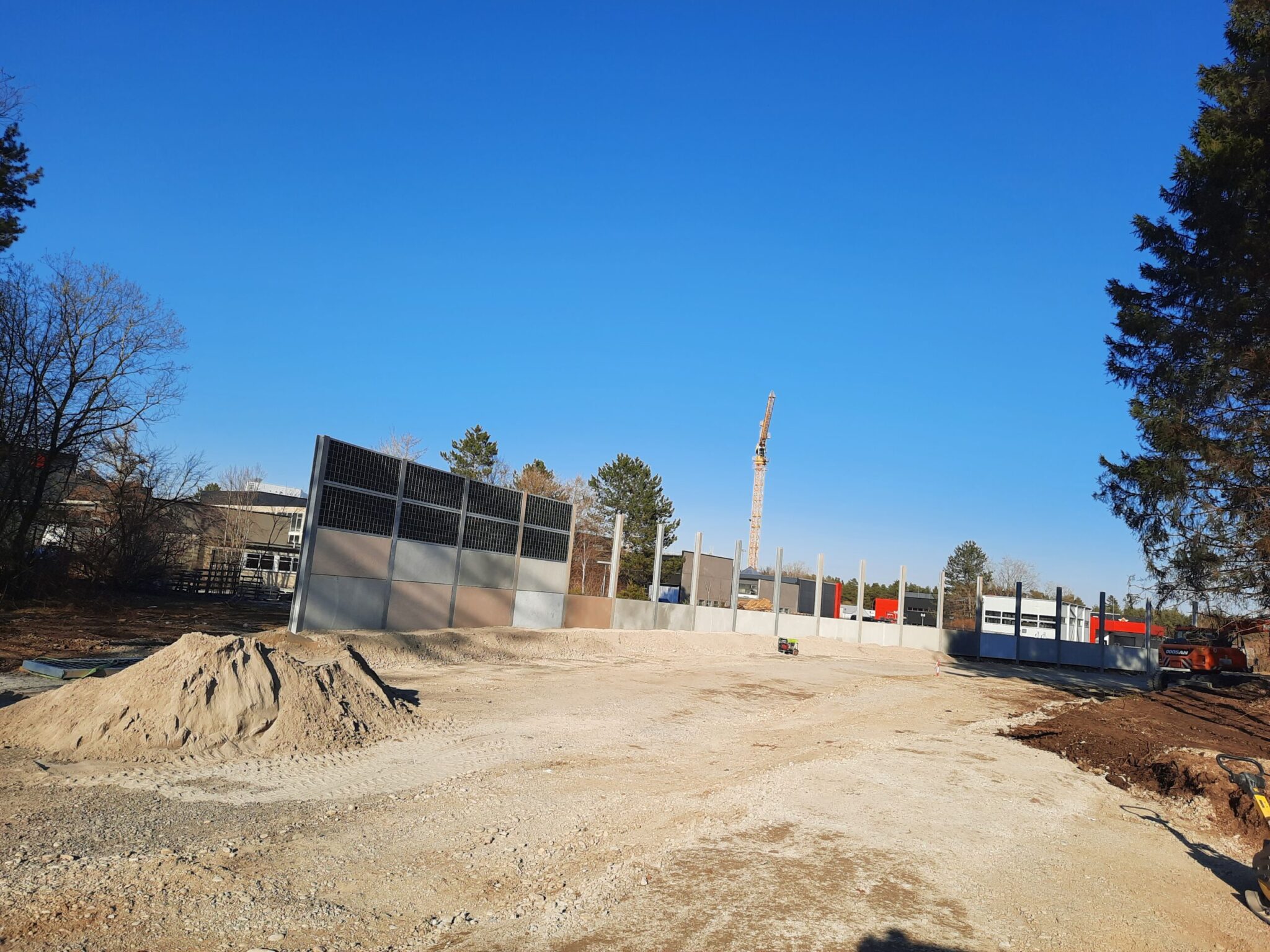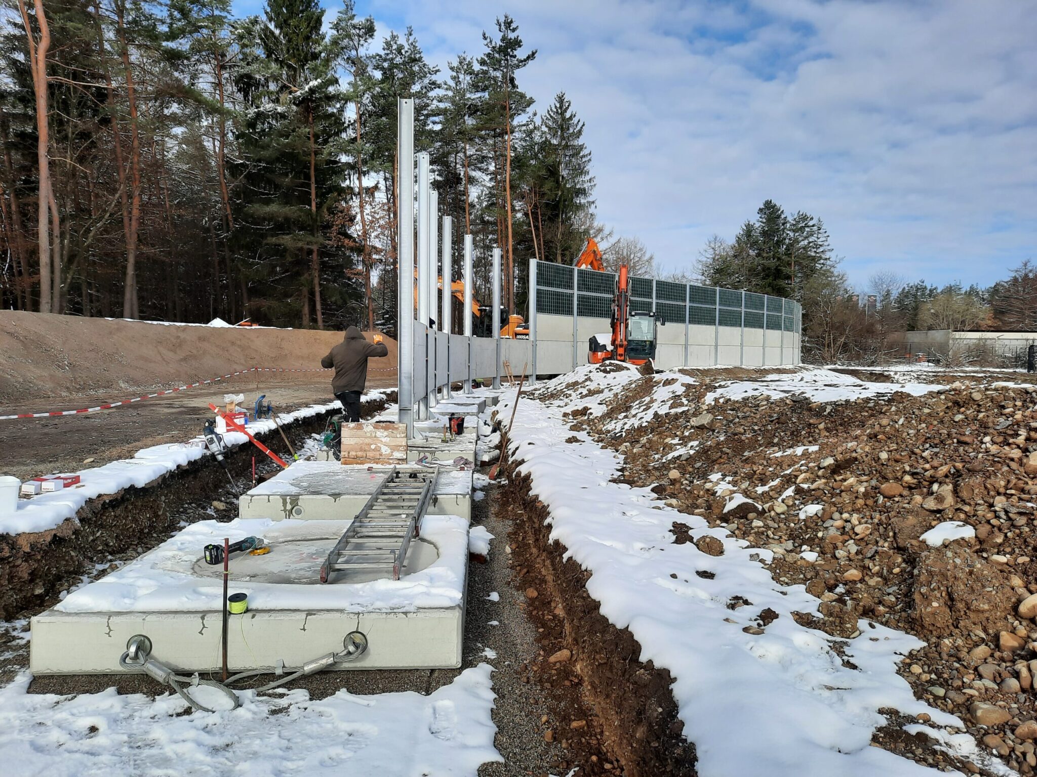 Diese 120 m lange und 4 m hohe RAU Lärmschutzwand aus 86 RAU Rock extensiv Elementen zeichnet die natürliche Umgebung in einem eleganten Schwung nach. Verstärkt wird der Eindruck durch die glatte Ansicht der unteren Elemente.