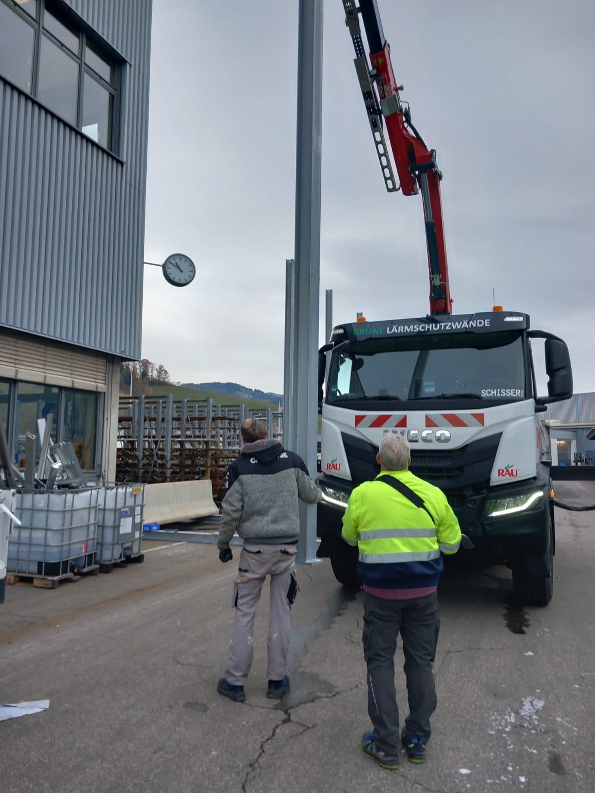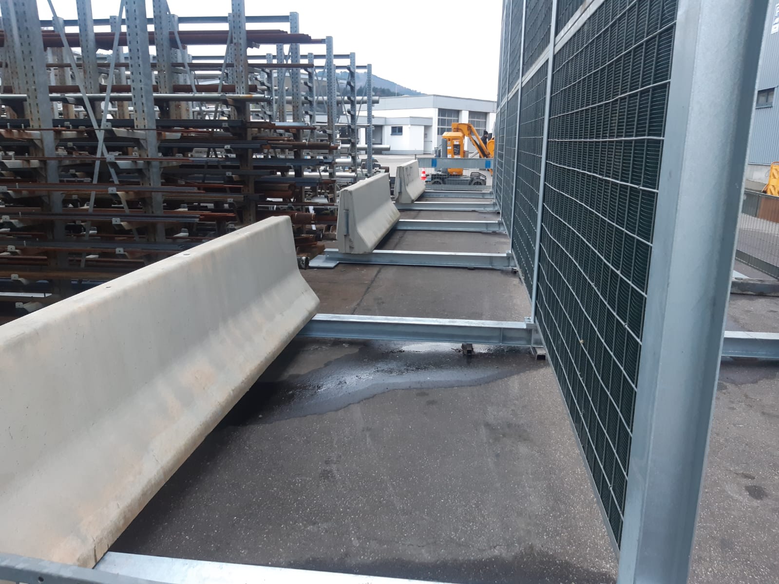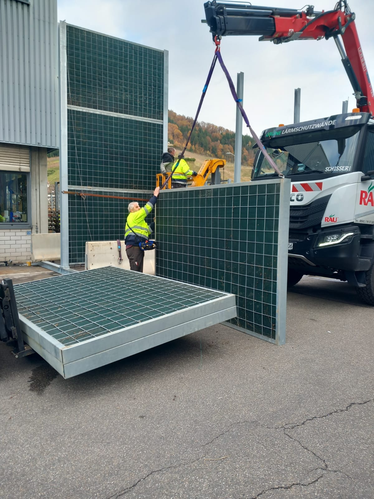 Wenn der Lärmschutz möglichst schnell installiert werden soll, liefern wir die Mobile RAU Rock auf Stahlfüßen. Die Betonelemente, sonst der Fuß der mobilen Lärmschutzwand z. B. an Baustellen, werden in diesem Fall als Gewichte auf der Stahlkonstruktion genutzt.